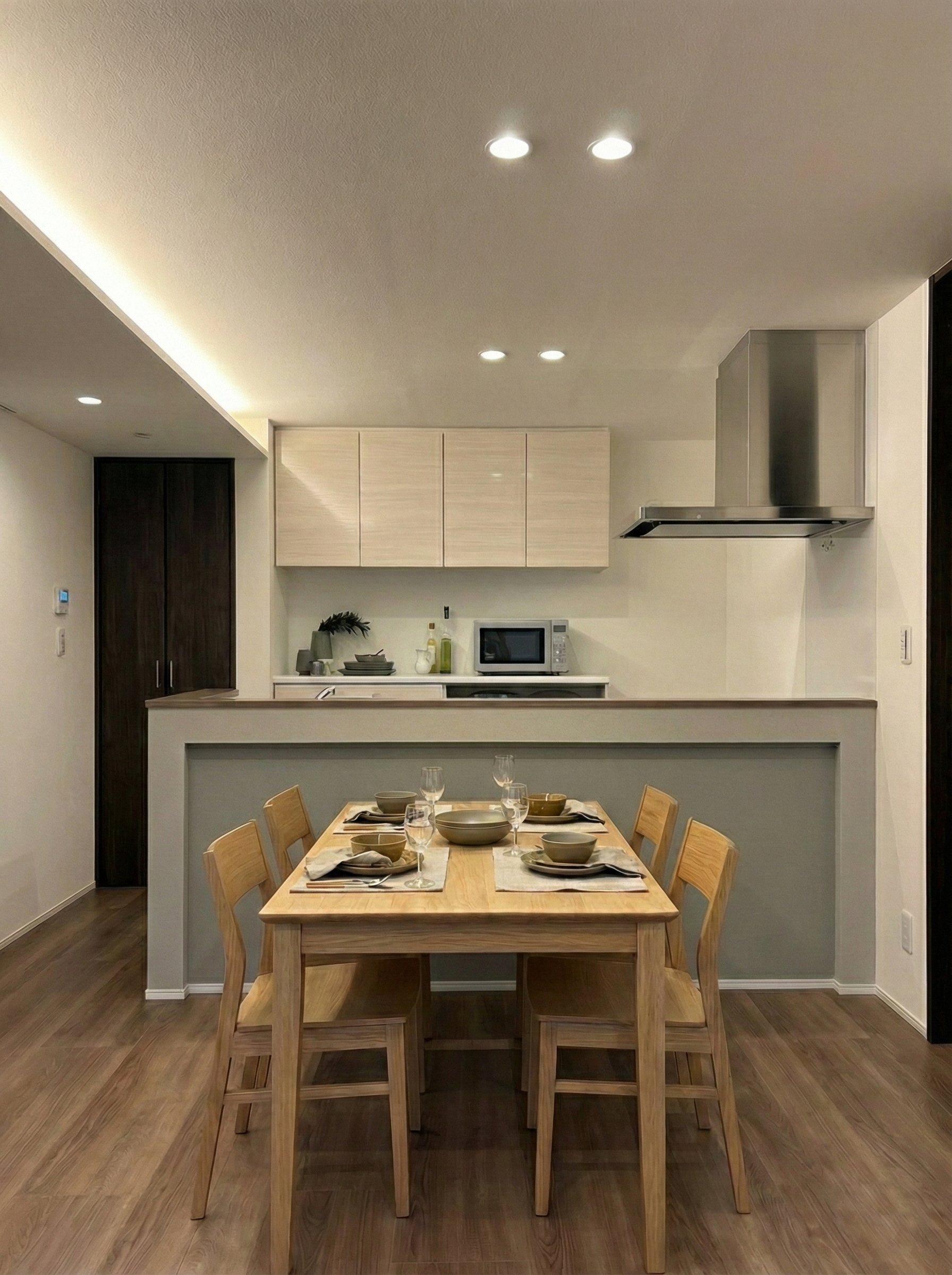 ■ キッチン・ダイニング|間接照明が引き立てる、開放感あふれるLDK